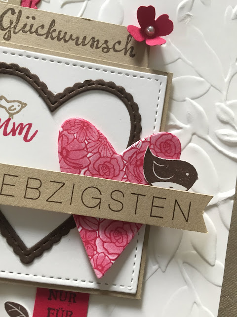 das tolle neue Designpapier "In Liebe" ist kürzlich bei mir eingezogen. Es sind wirklich so wunderschöne Designs dabei, dass man gar nicht weiß welche Seite man verwenden soll. Ich habe eine Karte zu einem 70. Geburtstag gestaltet. Auch die neuen Framelits "Herzlich bestickt" sind ein Traum und haben ihren Platz auf der Karte gefunden.